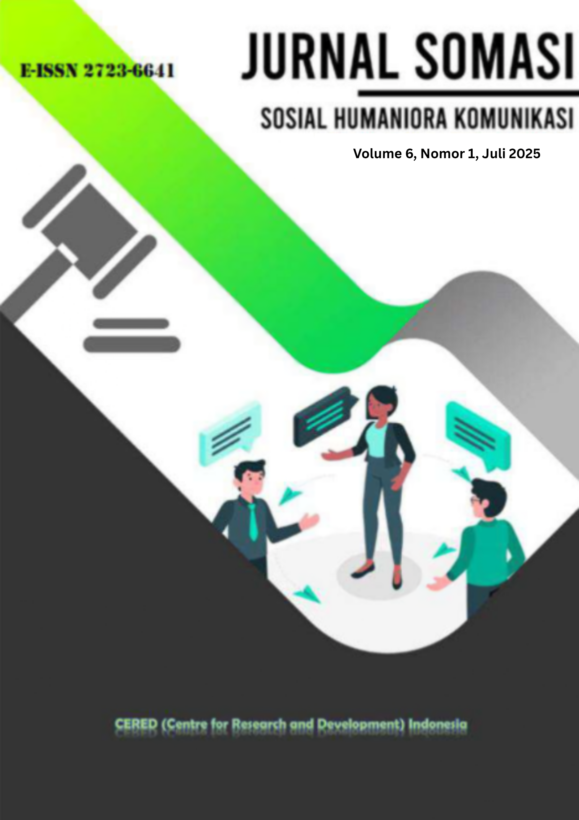 Jurnal SOMASI (Sosial Humaniora Komunikasi) was published by the Center for Research and Development Indonesia (CERED Indonesia) in July and January. Jurnal SOMASI is intended to disseminate information on scientific papers to academics and practitioners interested in Social Humanities and Communication. Jurnal SOMASI accepts submissions of articles written in Indonesian and English. The determination of the pieces to be published is carried out through a blind review process by the editorial team by taking into account aspects such as: meeting the standard requirements for scientific journal publication and article contributions to professional development.